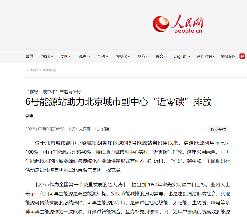 位于北京城市副中心潞城镇胡各庄区域的6号能源站自投用以来,清洁能源利用率已达100%,可再生能源占比超40%,持续助力城市副中心实现“近零碳”排放。这座采用绿色、可再生能源技术的区域能源站与传统化石能源供能形式有何不同?近日,“你好,碳中和”主题调研行活动走进北控集团所属raybet雷电竞公司 一探究竟。